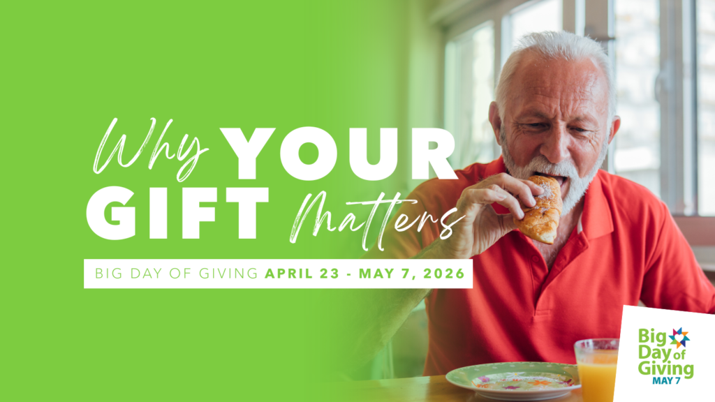The line of guests outside our doors isn’t just a line, it’s filled with people who have loved deeply, lost deeply, and are doing their best to carry on. Would you consider making a one-time gift to help us reach our $75,000 goal during Big Day of Giving? Your support ensures we can continue to care for people like Carl—not just with food, but with dignity, compassion, and moments of kindness that remind them they are not alone.